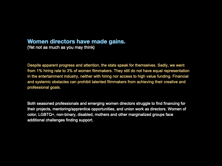 Created by women filmmakers for women filmmakers. We are here for real change.